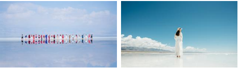 茶卡盐湖是一座有三千多年历史的盐场,湖水含盐量很大,会自然结晶成为一片白色的湖面,将天空、云朵和对岸的山都倒映在湖