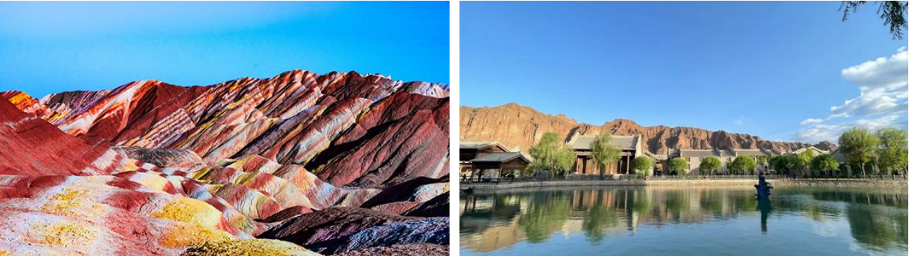 早餐后乘车前往张掖临泽游览“世界十大神奇地理奇观”—【张掖丹霞地质公园, 含区间车游览约 2 小时】,它是世间上少有的水色胭脂,没有碧海蓝天、高原绿地那般景致,却有如画般景色。国内唯一丹霞地貌与彩色丘陵景观高度复合区,以气势磅礴、形态丰富、色彩班斓而称奇,具有极高的观赏价值和重要的科考价值。姜文执导的电影《太阳照常升起》、张艺谋的《三枪拍案惊奇》、钱雁秋编导的电视连续剧《神探狄仁杰(第三部)》等影片均把该景区作为外景拍摄地。享有“中国最美的七大丹霞地貌”的美誉。特别安排游览有着“梦回丝绸之路,一结千年文化“之称的【张掖丹霞口旅游度假小镇】,品尝正宗的西北特色手工美食、体验甘肃本地民俗及人文历史、感受灵动而富有民族特色的丝路演艺秀,在小镇,你将享受到多方位演绎视觉盛宴,与各种街头氛围演艺、特色巡游不期而遇。前往入住当地酒店。