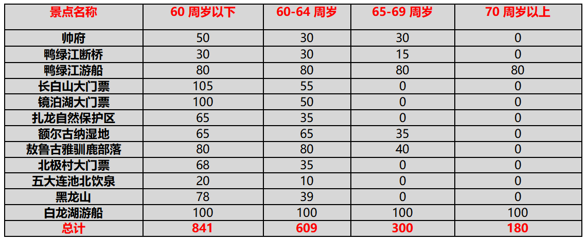 1、全程门票不含:按照年龄补交门票明细如下(生日需精确到日)